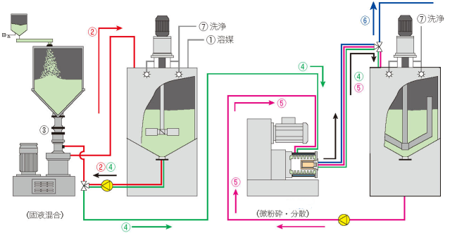 The grinding system pin nanomill shows the evolutionary develop- ment of system with the rotor-slotted pipe separating system. The enclosed horizontal agitator mill is designed for highest product throughput rates and possesses a pin grinding system for highest grinding intensity.